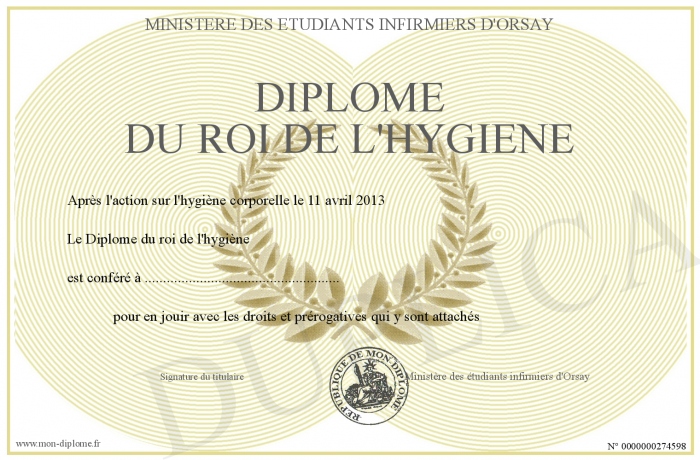 Envoyez par email votre Diplôme du roi de l'hygiène personalisé