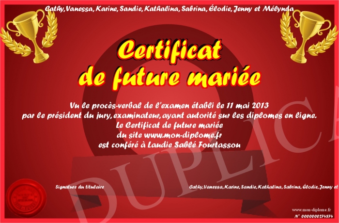 • Certificat de future mariée