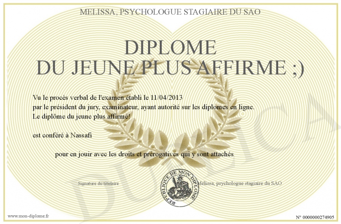Envoyez par email votre Diplôme du jeune plus affirmé ;) personalisé