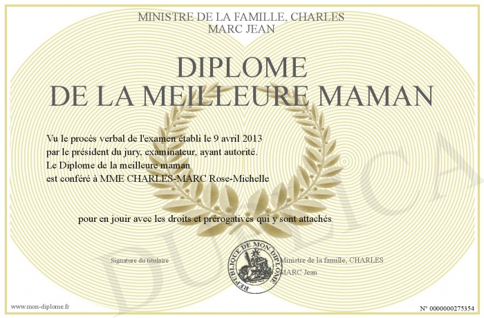 Envoyez par email votre Diplome de la meilleure maman personalisé