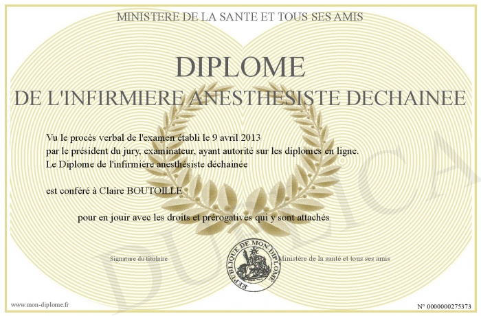Envoyez par email votre Diplôme de l'infirmière anesthésiste déchainée personalisé