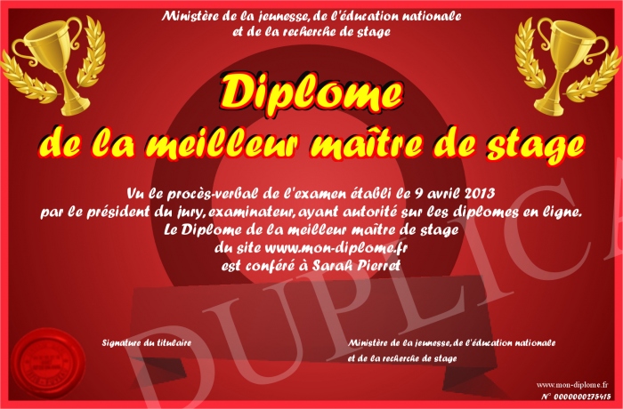 Envoyez par email votre Diplôme de la meilleur maître de stage personalisé