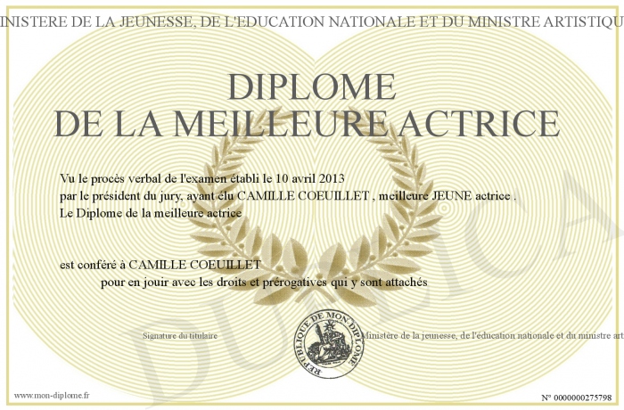 Envoyez par email votre Diplôme de la meilleure actrice personalisé