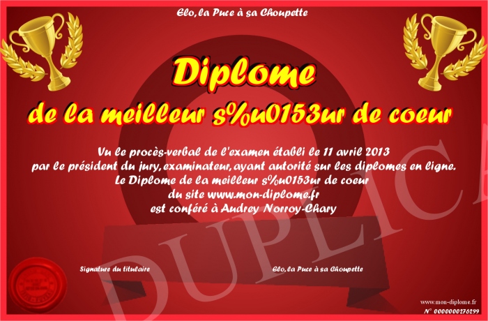 Envoyez par email votre Diplôme de la meilleur soeur de coeur personalisé