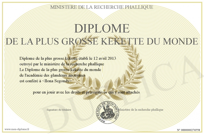 Envoyez par email votre Diplome de la plus grosse kékette du monde personalisé