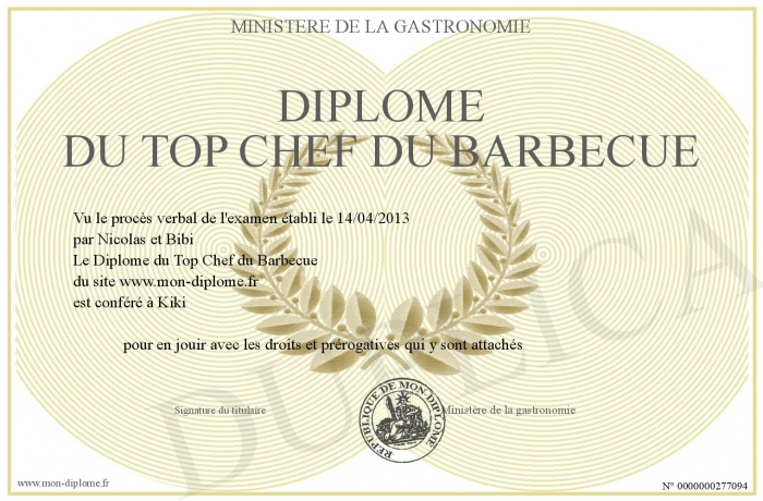 Envoyez par email votre Diplôme du Top Chef du Barbecue personalisé
