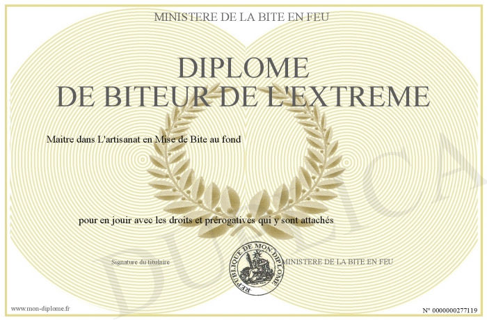 Envoyez par email votre DIPLOME DE BITEUR DE L'EXTREME personalisé