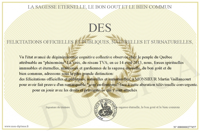 envoyé par le la sagesse éternelle, le bon gout et le bien commun !