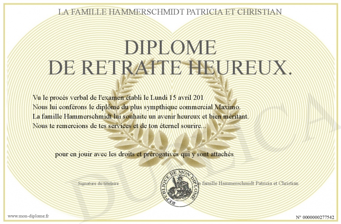 Envoyez par email votre diplôme de retraité heureux. personalisé