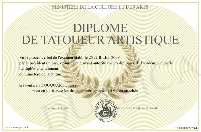 Envoyez par email votre Diplôme de tatoueur artistique personalisé