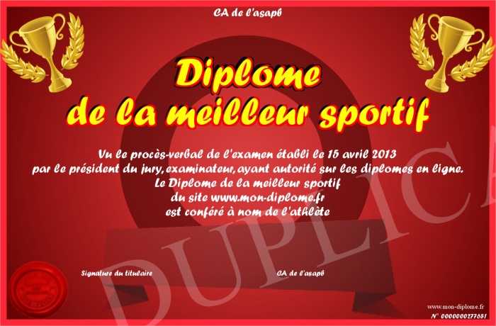 Envoyez par email votre Diplôme de la meilleur sportif personalisé