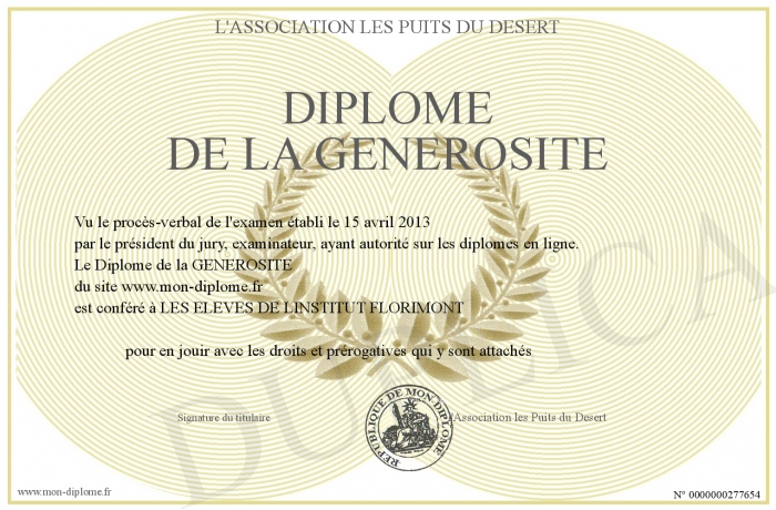 Envoyez par email votre Diplôme de la GENEROSITE personalisé