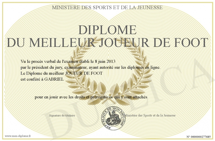 • Diplôme du meilleur JOUEUR DE FOOT