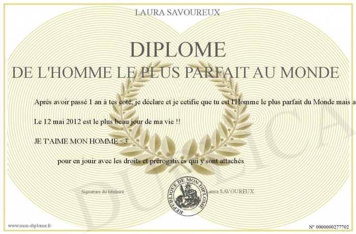 Envoyez par email votre Diplôme de l'Homme le plus parfait au Monde personalisé