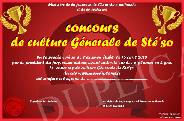 Envoyez par email votre concours de culture Génerale de Sté'so personalisé