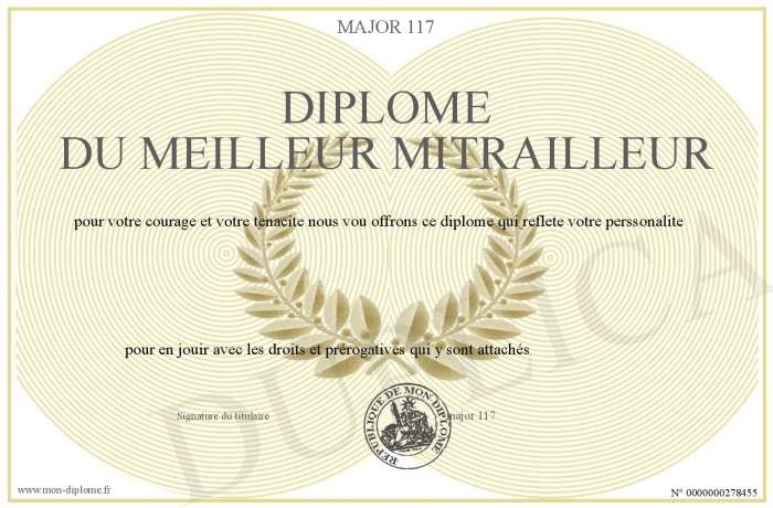 Envoyez par email votre Diplôme du meilleur mitrailleur personalisé