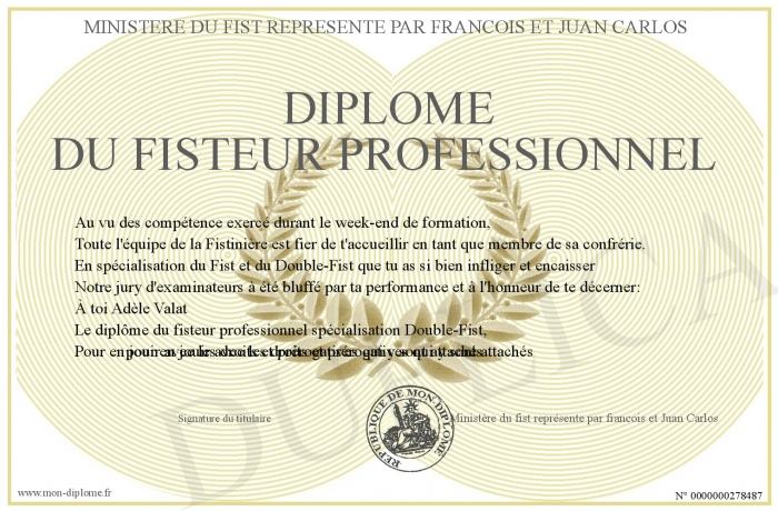 Envoyez par email votre Diplôme du Fisteur professionnel personalisé