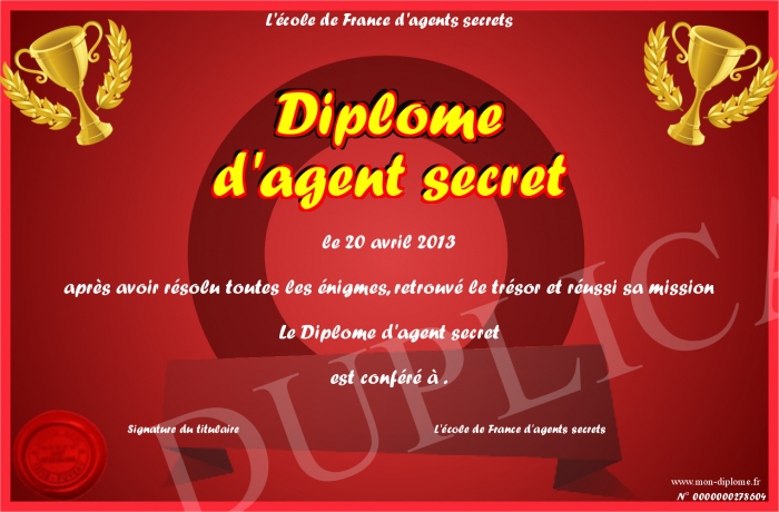 Envoyez par email votre Diplôme d'agent secret personalisé