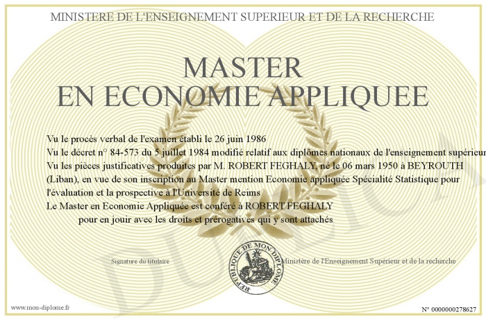 Envoyez par email votre Master en Economie Appliquée personalisé