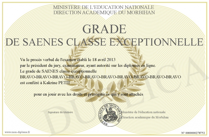 Envoyez par email votre grade de SAENES classe exceptionnelle personalisé