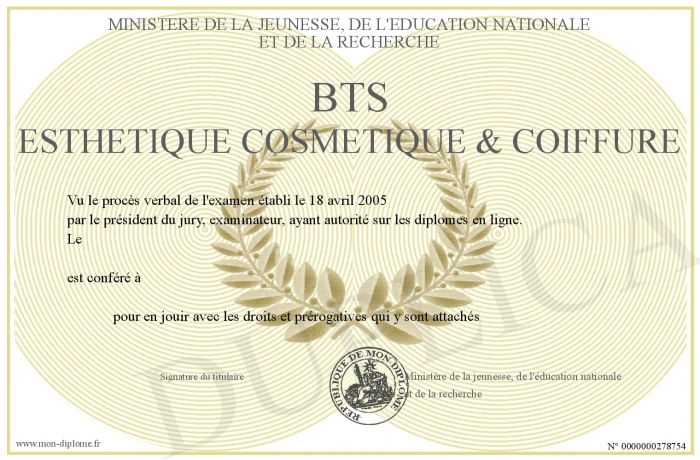 Envoyez par email votre BTS ESTHETIQUE COSMETIQUE & COIFFURE personalisé