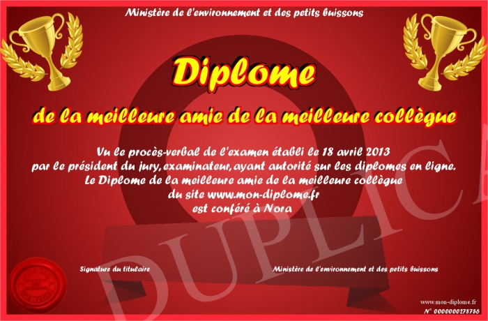 Envoyez par email votre Diplôme de la meilleure amie de la meilleure collègue personalisé