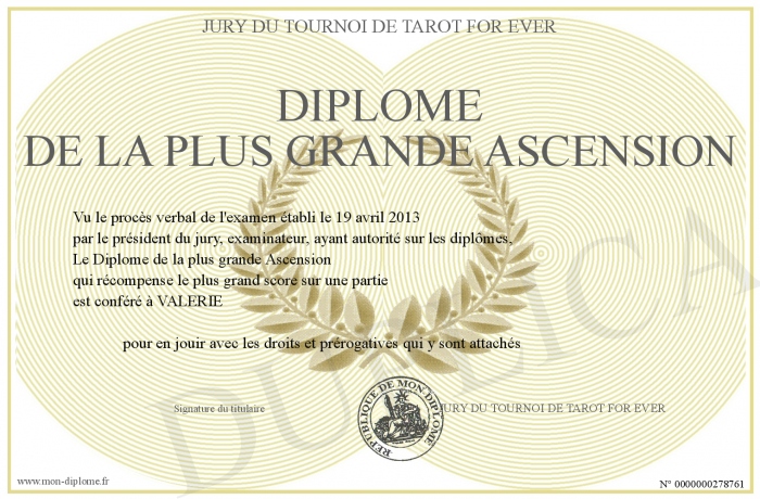 Envoyez par email votre Diplôme de la plus grande Ascension personalisé