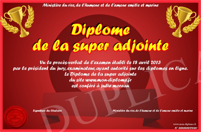 Envoyez par email votre Diplome de la super adjointe personalisé