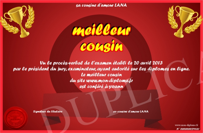Envoyez par email votre meilleur cousin personalisé