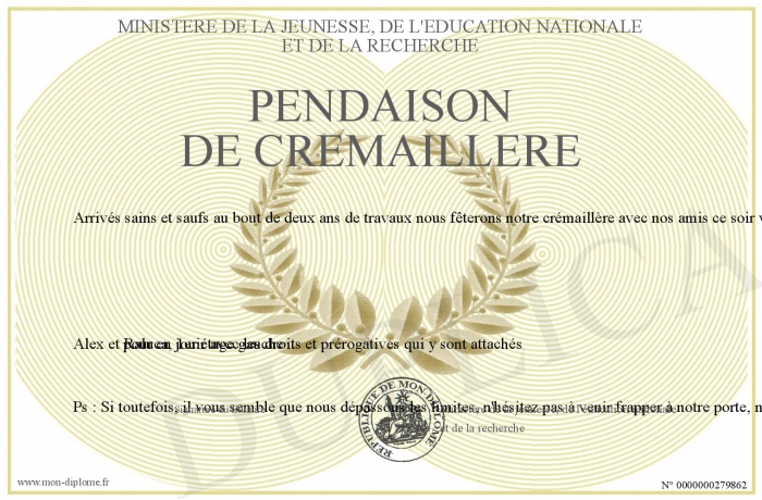 Envoyez par email votre Pendaison de crémaillère personalisé