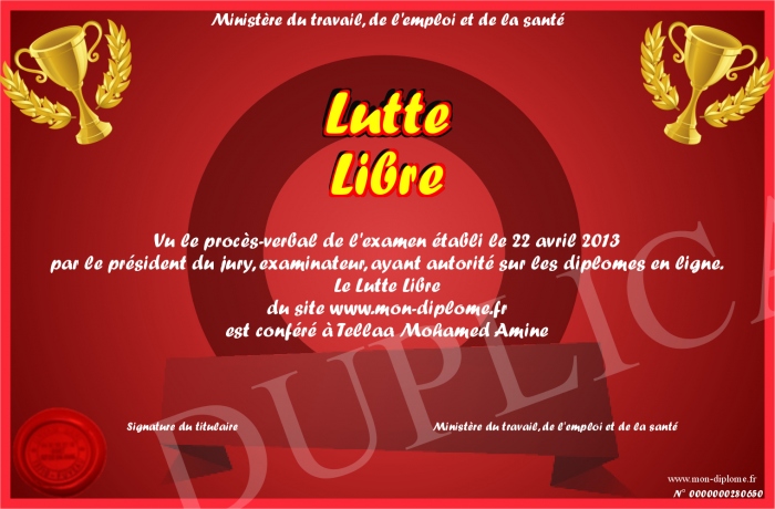 Envoyez par email votre Lutte Libre personalisé