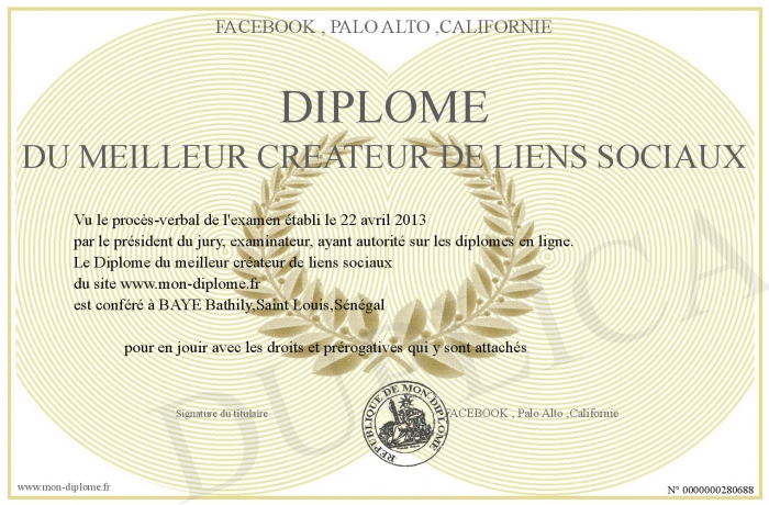 Envoyez par email votre Diplôme du meilleur créateur de liens sociaux personalisé