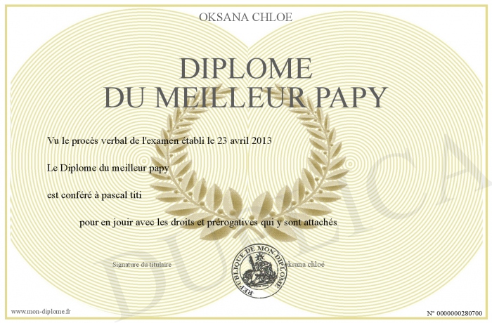 Envoyez par email votre Diplôme du meilleur papy personalisé