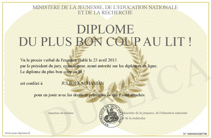 Envoyez par email votre diplôme du plus bon coup au lit ! personalisé