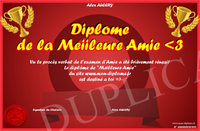 Envoyez par email votre Diplôme de la Meiileure Amie -3 personalisé