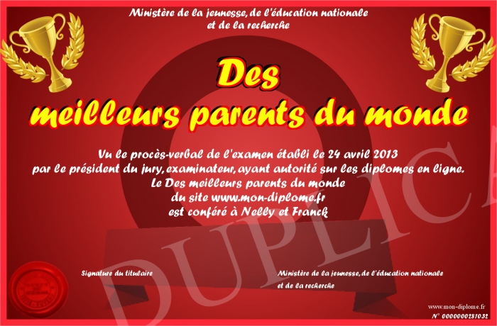 Envoyez par email votre Des meilleurs parents du monde personalisé