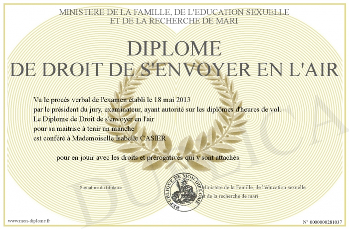 Envoyez par email votre Diplôme de Droit de s'envoyer en l'air personalisé