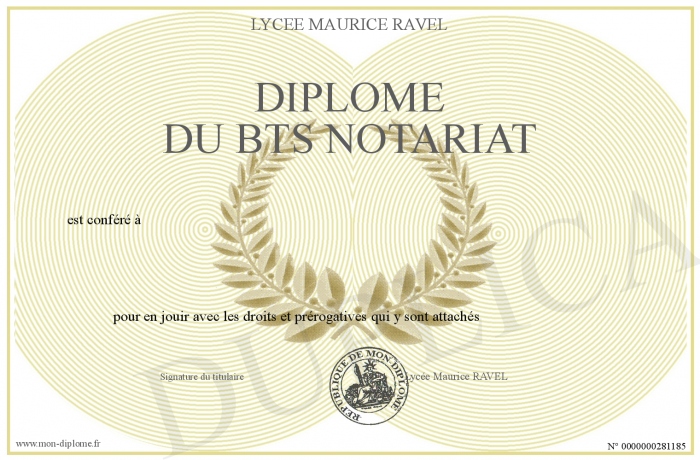 Envoyez par email votre Diplôme du BTS Notariat personalisé