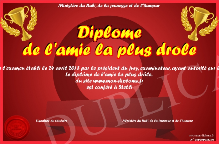 Envoyez par email votre Diplôme de l'amie la plus drôle personalisé