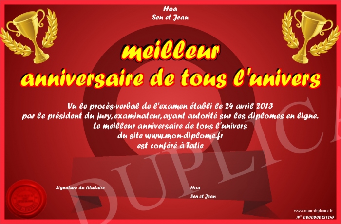 Envoyez par email votre meilleur anniversaire de tous l'univers personalisé