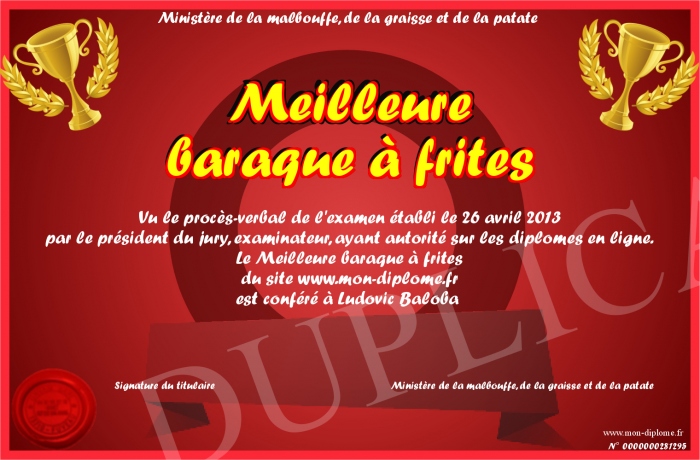 Envoyez par email votre Meilleure baraque à frites personalisé