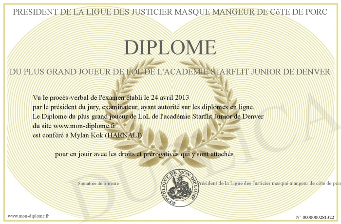 Envoyez par email votre Diplôme du plus grand joueur de LoL de l'académie Starflit Junior de Denver personalisé