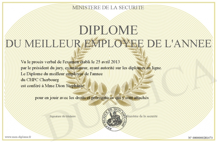 Envoyez par email votre Diplôme du meilleur employee de l'annee personalisé