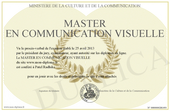 Envoyez par email votre MASTER EN COMMUNICATION VISUELLE personalisé