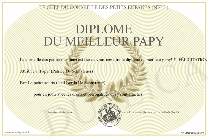 Envoyez par email votre diplôme du meilleur Papy personalisé