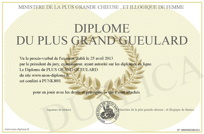 Envoyez par email votre Diplôme du PLUS GRAND GUEULARD personalisé