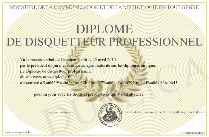 Envoyez par email votre Diplôme de disquetteur professionnel personalisé