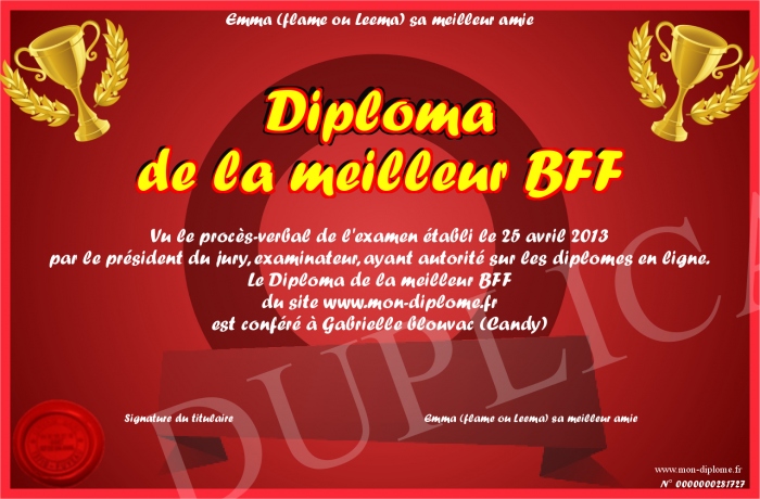 Envoyez par email votre Diploma de la meilleur BFF personalisé