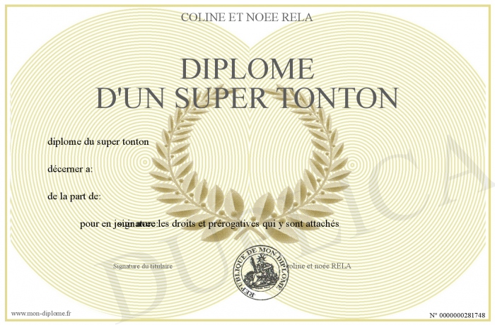 Envoyez par email votre Diplôme d'un super tonton personalisé