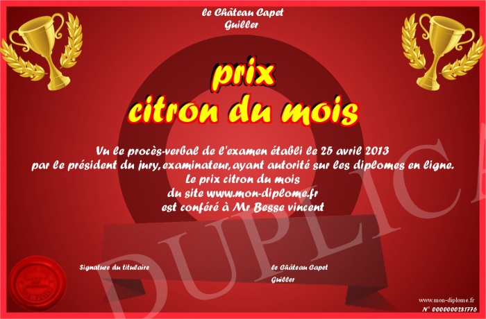 Envoyez par email votre prix citron du mois personalisé